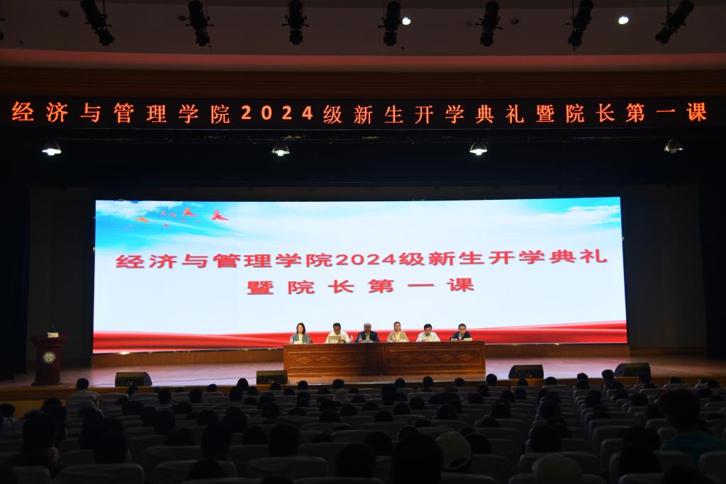 10月15日晚,经管学院于五教大礼堂召开2024级新生开学典礼暨院长第一课。学院全体院领导、新生班主任、辅导员以及2024级研究生、本科生参加,典礼仪式由学院党委副书记汪功伟主持。