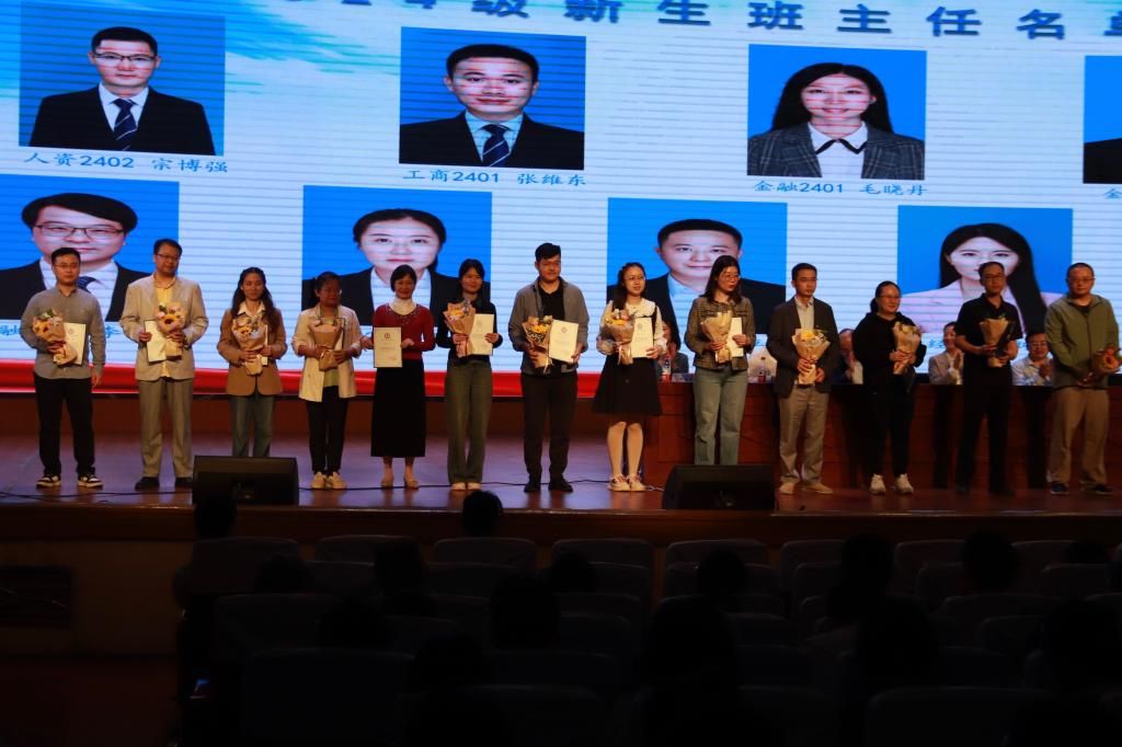 典礼最后环节,副院长王治、尹筑嘉、何昊为全体2024级班主任颁发聘书,各班代表为其班主任献上鲜花。