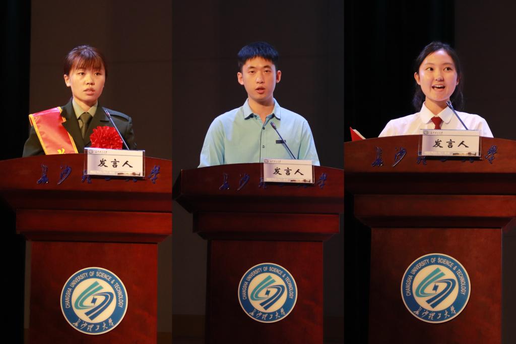 老生代表文思汝、研究生代表24级国际商务专硕林泽龙、本科生代表金融2401班何越懿作为学生代表依次发言。