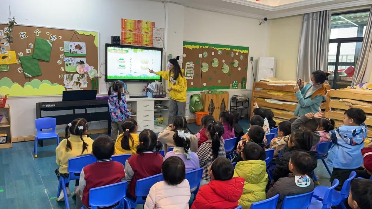 志愿者们从生活中的数字导入,如纸币、拨号、时钟、常用应急电话等,与小朋友们热情互动,并通过向小朋友们形象介绍0-9十个数字、带唱朗朗上口的数字歌等,点燃了课堂的活跃氛围。随后,数字跳格子、数字捉迷藏、数字加法三个趣味小游戏让小朋友们分组一步步“闯关”数字世界,在欢声笑语中度过了快乐的课堂。