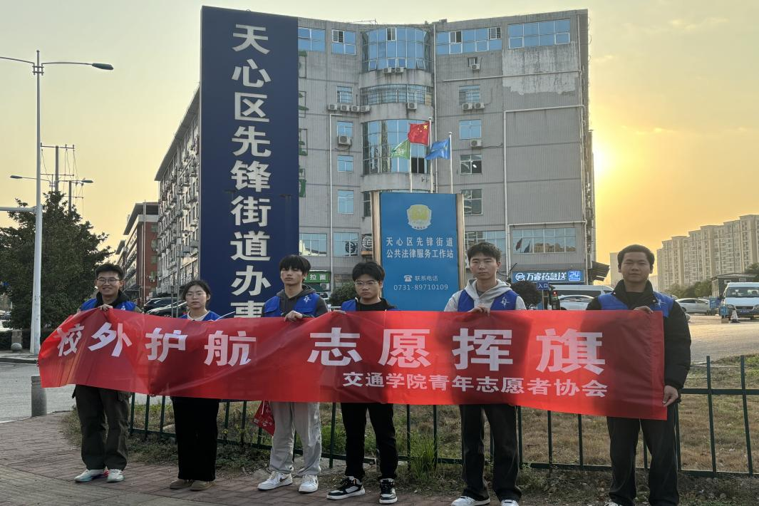 “叔叔,遇到路口要慢行,骑摩托车要戴好头盔!”3月2日,在天心区西门港子河路与新电路交叉口,16名身穿“交通蓝”马甲的交通学院志愿者联合长沙市公安局交通警察支队天心大队十一中队开展“校外护航,平安交通”学雷锋志愿活动。