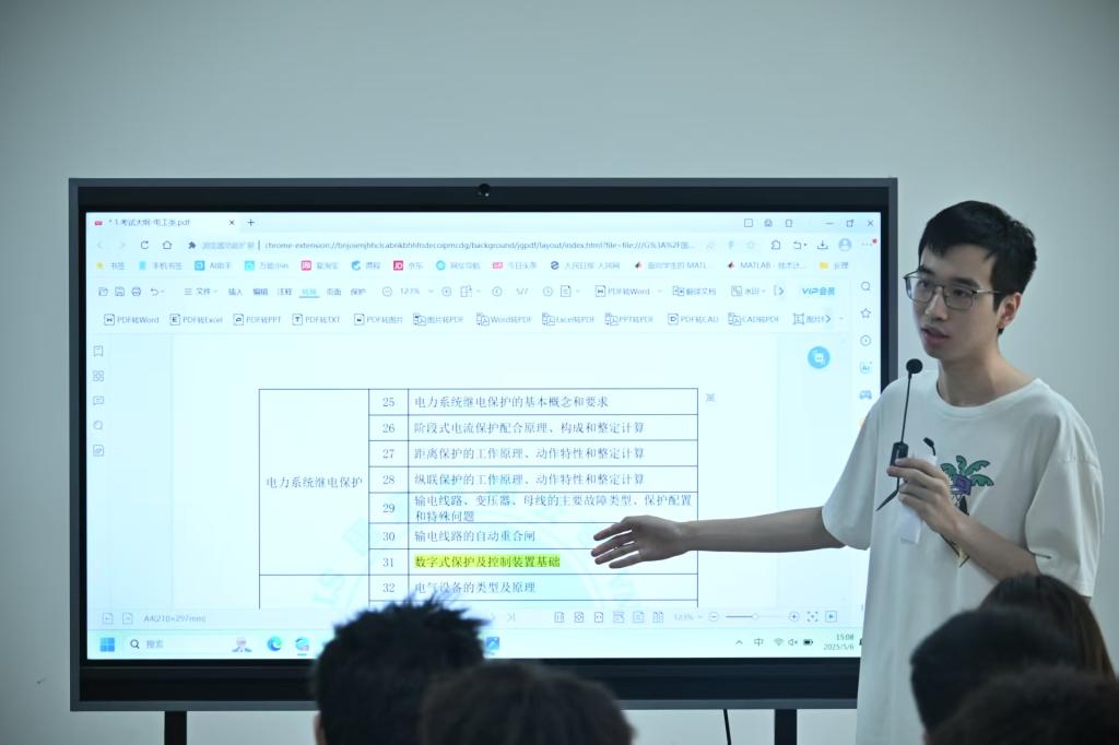 5月6日,电气学院在工科一号楼B312教室举办国家电网、南方电网备考经验分享会。活动邀请电卓2101班孟令敬、周杨明睿及电气2105班孔令知三位学生代表担任主讲,学院就业指导中心主任欧彩玲,2022级辅导员楚艳鸽、吴佳骐出席活动,七十余名2022级学生参加学习。