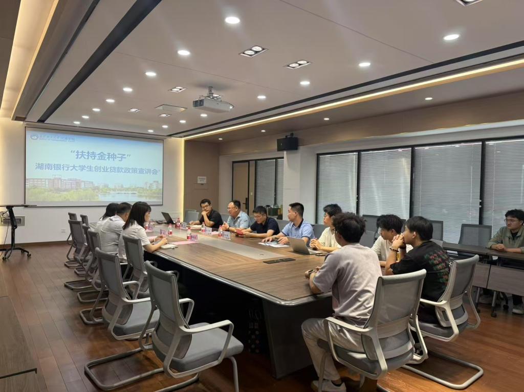 5月20日下午,交通学院与湖南银行定王台支行联合主办的“‘扶持金种子’大学生创业贷款政策宣讲会”在云塘校区工二B413会议室举行。活动旨在为即将参加“金种子杯”大学生创业大赛决赛的团队提供政策支持,深化银校合作,激发学生创新创业活力。湖南银行定王台支行行长唐敏、副行长隆中起,交通学院党委副书记任志祥,学工办彭笠、李特超,4个项目团队师生共同参会。