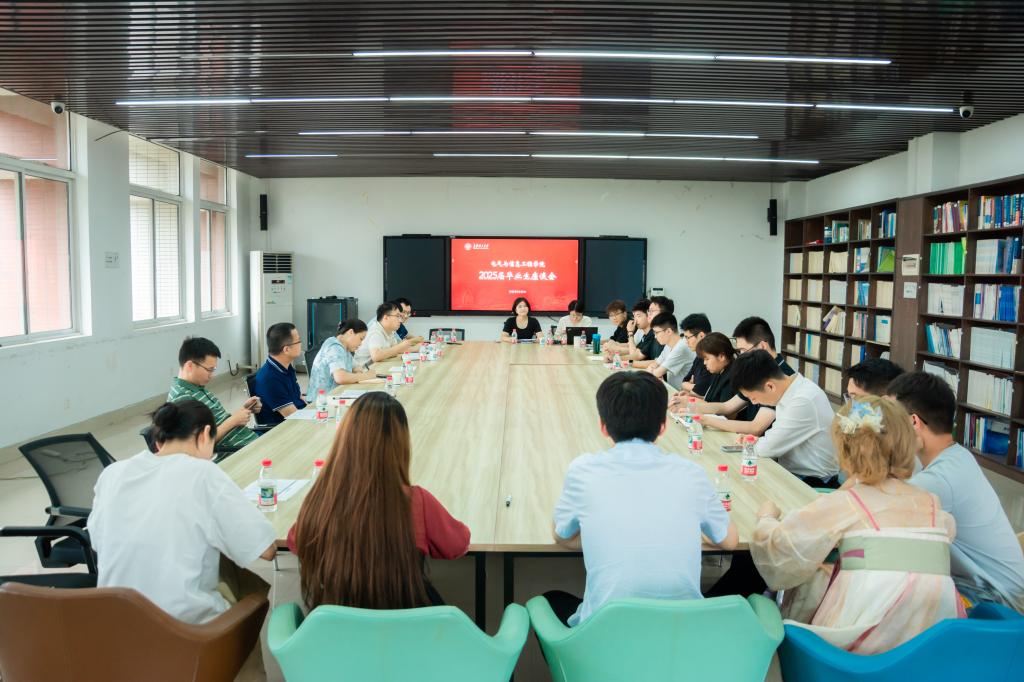 6月10日下午,电气学院召开2025届研究生毕业生代表座谈会。学院党委书记丁丹、党委副书记周巍、副院长贾志伟、国重实验室副主任姜飞、2025届研究生辅导员楚艳鸽、樊喜雁及18位研究生及导师代表参加了会议。本次会议由周巍主持。