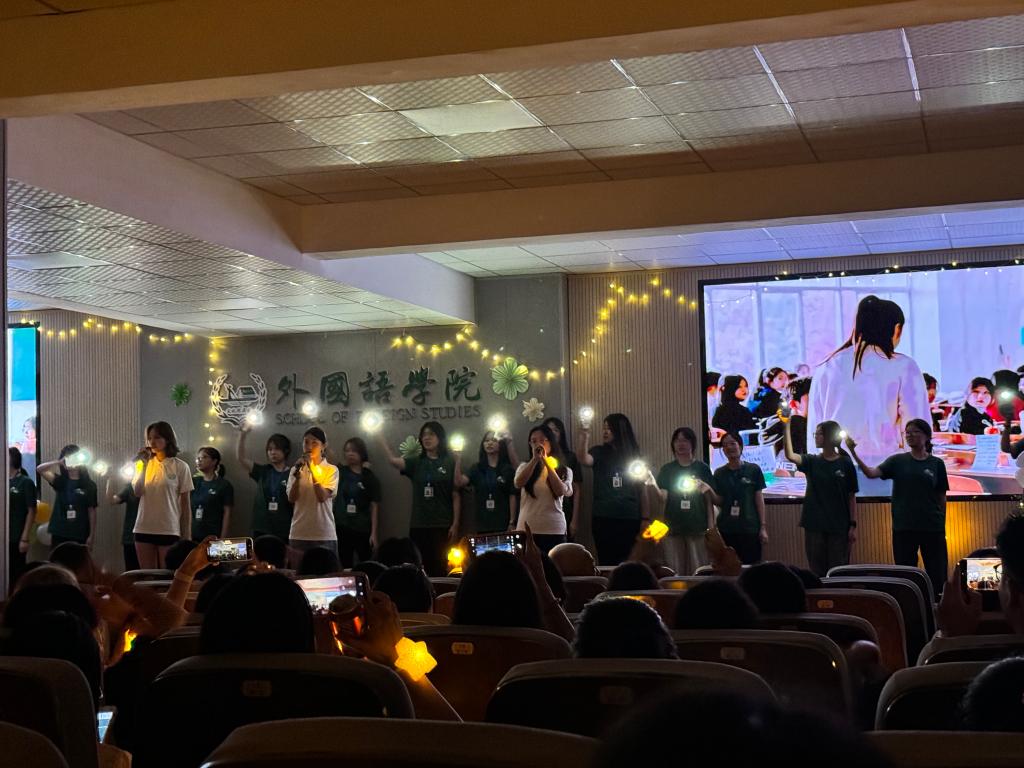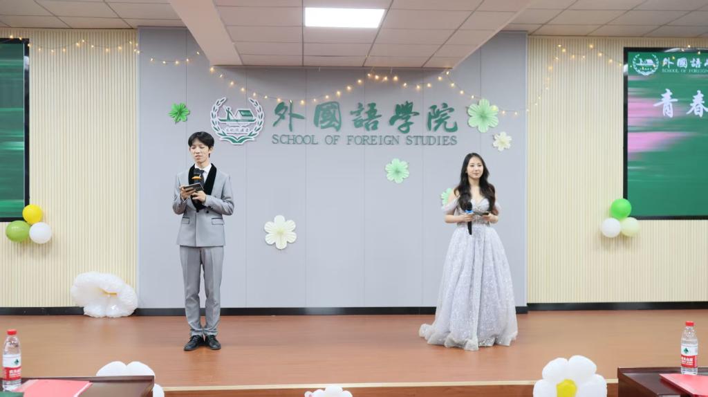 晚会在《想去海边》《唯一》歌曲串烧优美的旋律中温情开场。段胜峰在致辞中勉励毕业生们要“眼里有光,心中有爱”,希望全体毕业生“以语言为翼、以文化为根、以梦想为帆”,勇敢奔赴人生的星辰大海。郑延国以原创诗歌给毕业生们送上了温暖祝福。