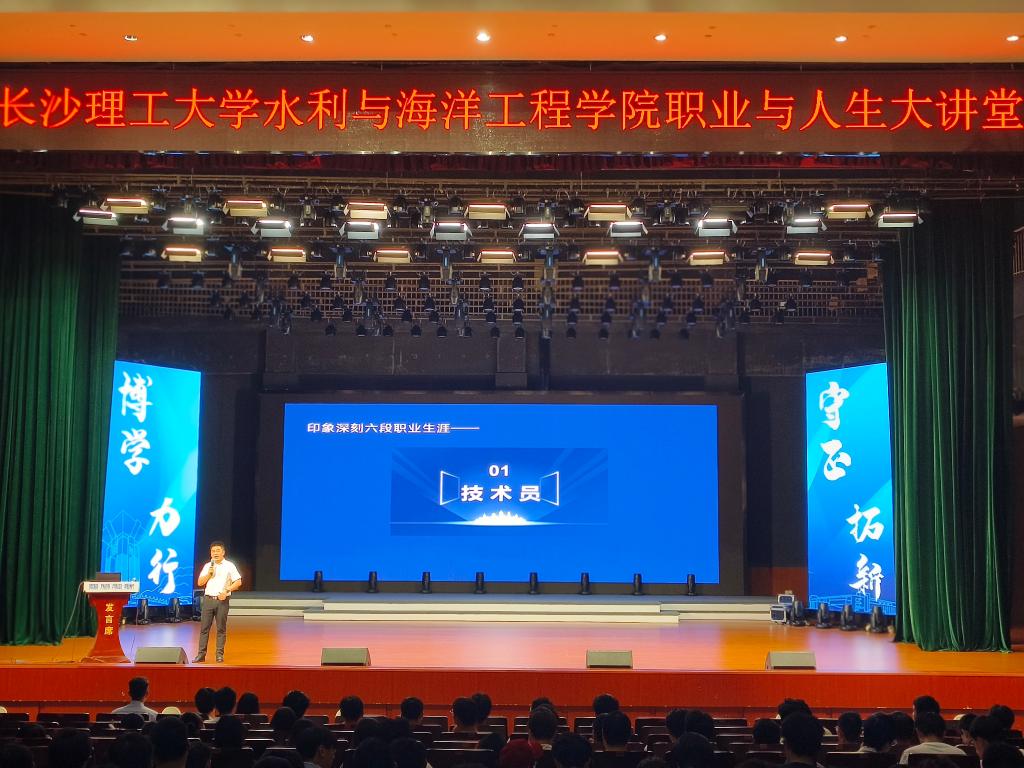“从技术员到项目经理,从秘书到团委书记……面对职务调整与行业变迁,关键在于持续提升核心竞争力。”6月23日晚,水利与海洋工程学院在云塘校区大会堂举办“职业与人生”大讲堂,中交四航局湖南分公司总经理、06届港口航道与海岸工程专业校友郭井龙应邀担任主讲人,800余名学子现场聆听其职业与人生智慧分享。