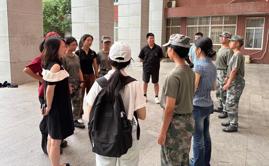 7月12日,文学与新闻传播学院党委副书记刘莎、2024级辅导员项永生及部分民兵连老队员一行前往云塘校区工科三号楼,看望慰问正在参加暑期集训的文新学院民兵连学生。