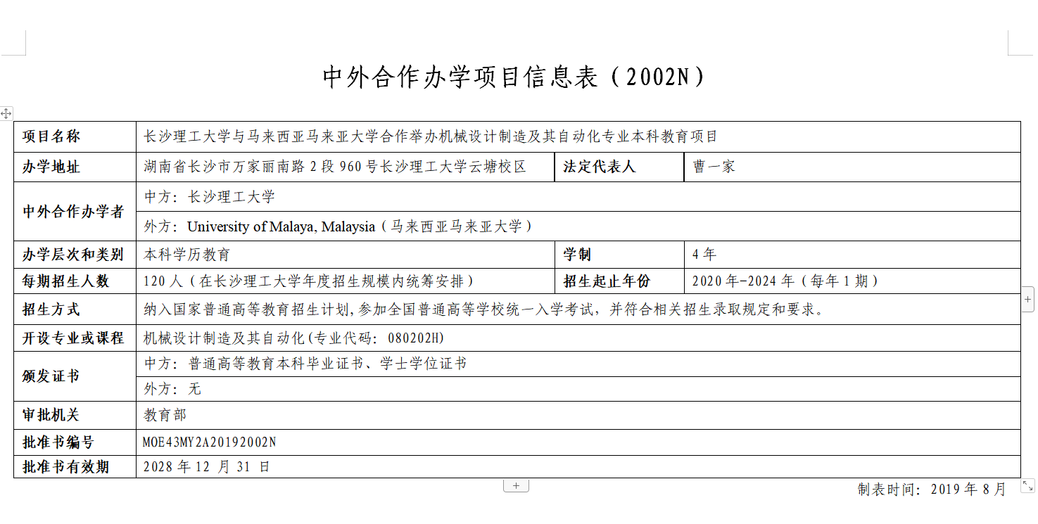 近日,教育部发文《教育部关于批准2019年上半年中外合作办学项目的通知》(教外函〔2019〕55号),共30个项目获得批准,开云官网与马来亚大学(University of Malaya)合作举办的机械设计制造及其自动化专业本科教育项目位列其中,这是开云官网继土木工程、电气工程及其自动化专业项目后从教育部获批的第3个中外合作办学项目,是开云官网本科教育国际化办学上水平、上台阶的又一标志性成果。