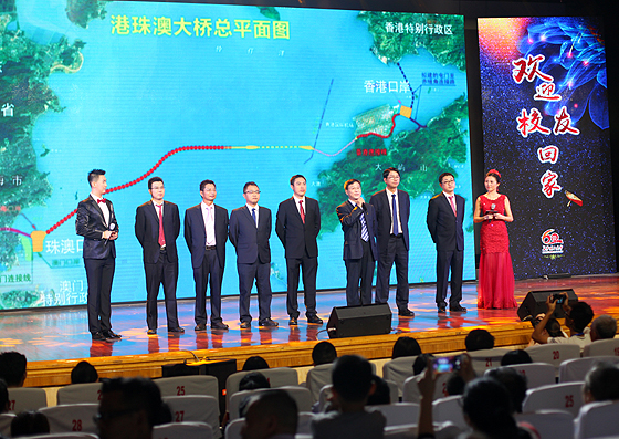 在音乐会间隙,插播了“欢迎校友回家”的视频。在港珠澳大桥建设一线的校友通过视频向母校表达了真诚的祝福,余烈、孙建波、张文森、徐永刚等7位校友更是来到音乐会现场,和大家分享工作、学习和生活经历,谈母校带给他们的深远影响。2004届毕业生孙建波说,在以他名字命名的工作室17个人中,有8位是长理人,自2012参与港珠澳大桥建设以来,他们在工作中一直秉承工匠精神,专注、踏实地做好每一个方案,攻克一个又一个技术难题,获得了可喜的成绩。2005届校友张文森在港珠澳大桥的建设期间,曾在荒无人烟的没水没电的岛上连续奋战14个月,当被问到是什么一直支撑着他时,他表示:在工作的过程中始终谨记学校校训:博学,力行,守正,拓新。母校教会了我们勇于开拓勇于创新勇于担当勇于奋进的拓荒精神,支撑着我们一次次克服困难,勇敢向前。港珠澳大桥管理局副局长余烈介绍说,在长达十三年的大桥建设过程中,长理校友以踏实肯干、细致严谨、爱岗敬业的工作态度被业界公认,受到好评,并表示自己也一直以来深受母校铺路石精神的影响,对老师的培养和母校的栽培表示感谢,祝福母校的未来更加辉煌。