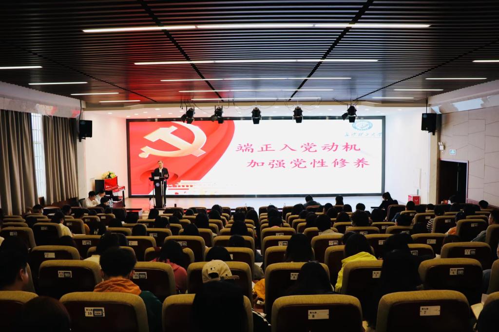 5月10日下午,经管学院第16期党员发展对象培训班第五次理论课在云塘校区设计艺术学院A101报告厅开展。本次党课由副校长谈传生主讲,汽机学院辅导员彭琼英、马克思主义学院教师胡景谱共同授课。经管学院党委副书记唐青、水利学院党委副书记银波、城南学院辅导员张强,经管学院和水利学院160名党员发展对象参加学习。党课由经管学院党建辅导员叶鑫主持。