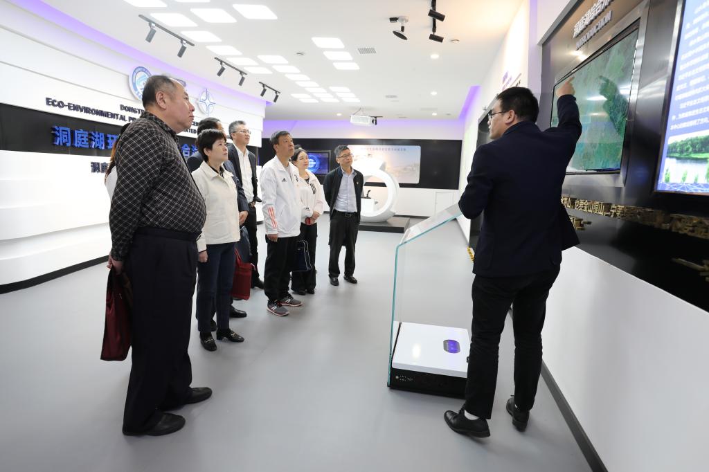 在“洞庭湖水环境治理与生态修复湖南省重点实验室”,学员们深入了解了洞庭湖水资源、水环境、水生态概况和当前面临的挑战与机遇、实验室的发展目标及近期在水生态保护方面取得的成效,观看了守护洞庭成果展板与地质地貌全息投影。2018年11月,湖南省委书记杜家毫调研开云kaiyun体育时,强调学校要充分发挥学科优势,加强洞庭湖环境保护与综合治理研究,并现场提出了科研课题。2019年,学校建设完成“智慧洞庭信息化平台”,实验室以习近平总书记“节水优先、空间均衡、系统治理、两手发力”的十六字治水方针为指导思想,将物联网、地理信息系统、云计算、大数据、虚拟现实等新一代信息技术相结合,紧密围绕洞庭湖流域水安全突出问题,建成了针对防汛抗旱决策支持、河长制综合管理、流域水资源管理、工程运行管理等业务系统于一体的流域信息化平台。