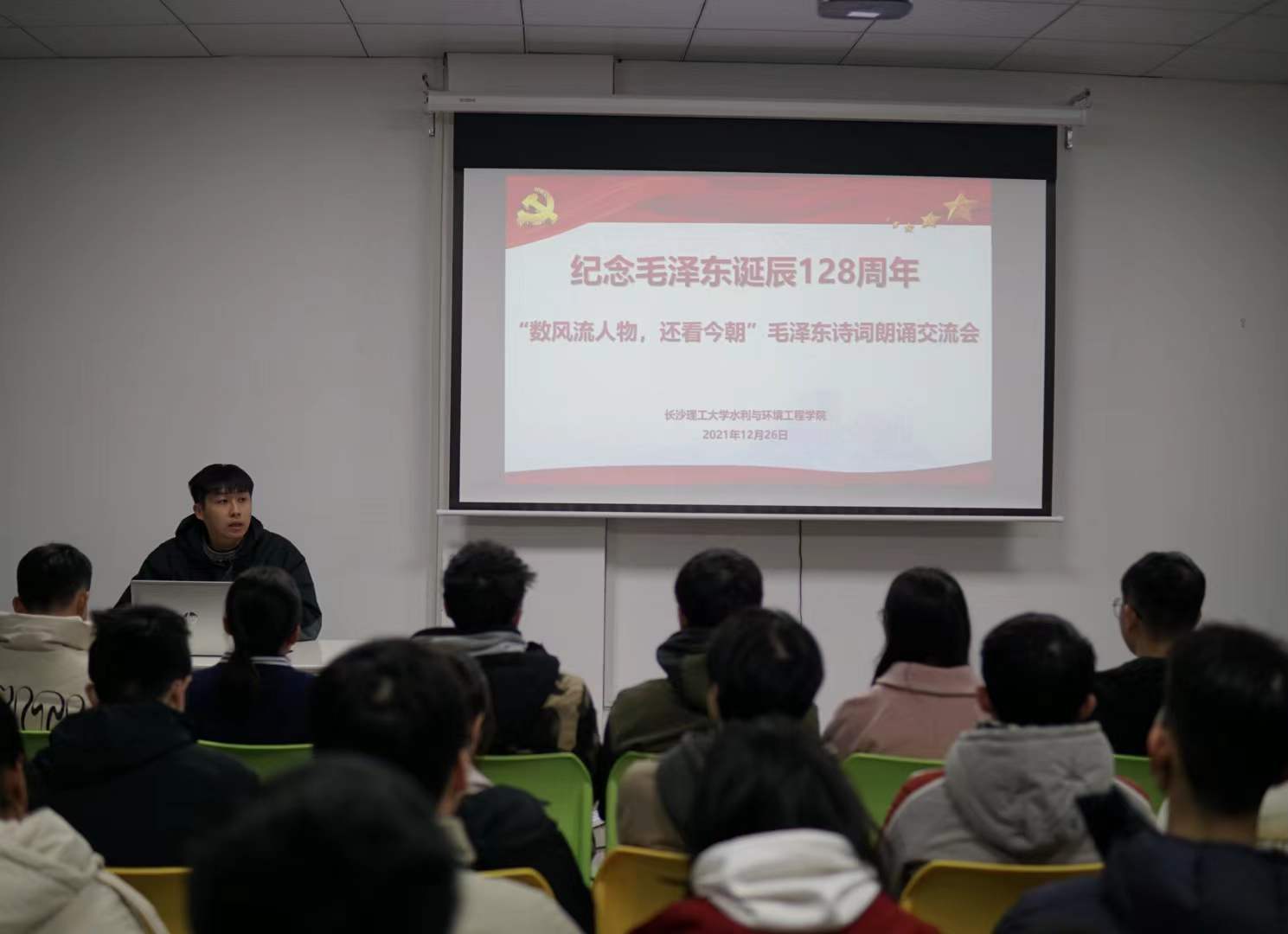 12月26日晚,慷慨激昂的诵读声在学院青马学习室里回荡,水利学院正在举办“数风流人物,还看今朝”毛泽东诗词朗诵交流活动。
