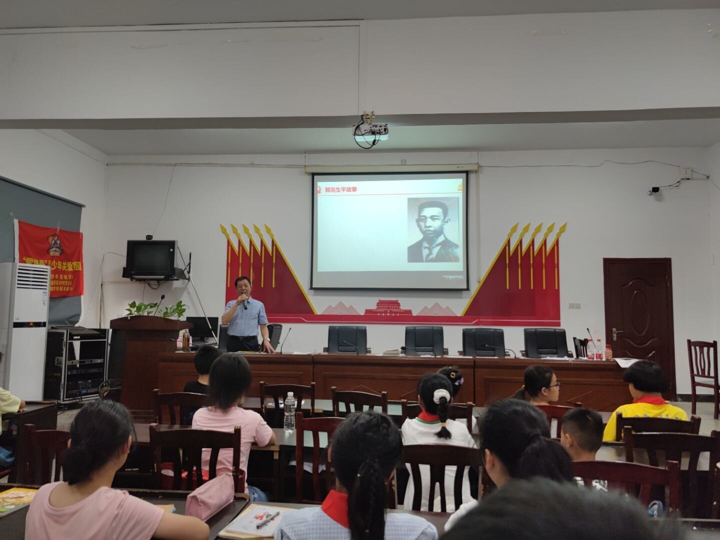 上午,志愿团邀请了来自望城区委党校的五老讲师团金牌讲师、郭亮村老书记姚建国给孩子们讲述湖南著名工人运动领袖郭亮的故事。郭亮不懈奋斗,视死如归的革命精神深深触动了孩子们的心灵,在志愿团的引领下,孩子们在思考郭亮的英雄事迹时,他们的内心也种下了爱国的种子,将不懈努力,为祖国奋斗终生。