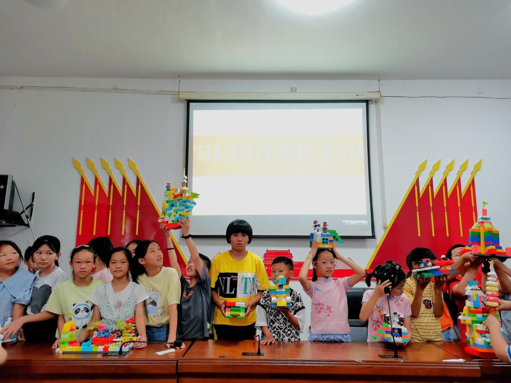 下午,志愿团给孩子们带来了近几日活动中较受孩子欢迎的贝贝乐积木小组课。在明白基础注意事项,分清积木种类,并完成热身拼接之后,孩子们迅速进入状态,以小组为单位合作拼装一个作品,并选择一名组员作为代表,向班级介绍小组作品,这在一定程度上提升了团队的凝聚力,培养了孩子们手工制作的能力与创造力。