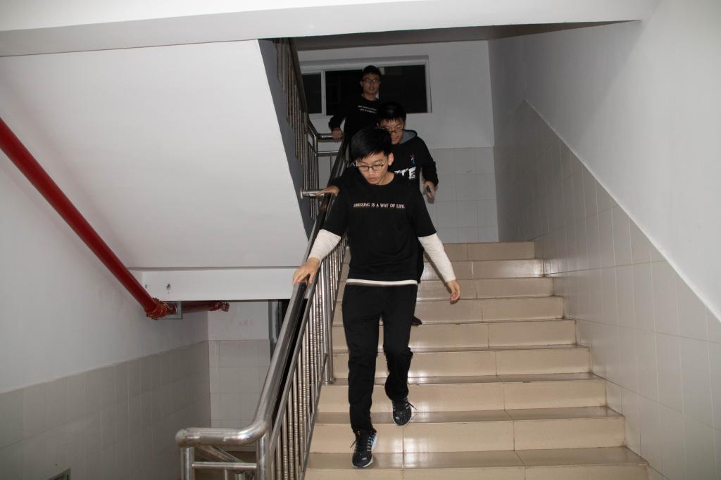 18时40分,警报声响起,交通学院党委副书记王煜坤下达“宿舍楼发生火灾,请同学们立即撤离”命令,楼栋值班工作人员迅速到达各楼层协助层长按照逃生演练预案组织学生疏散。