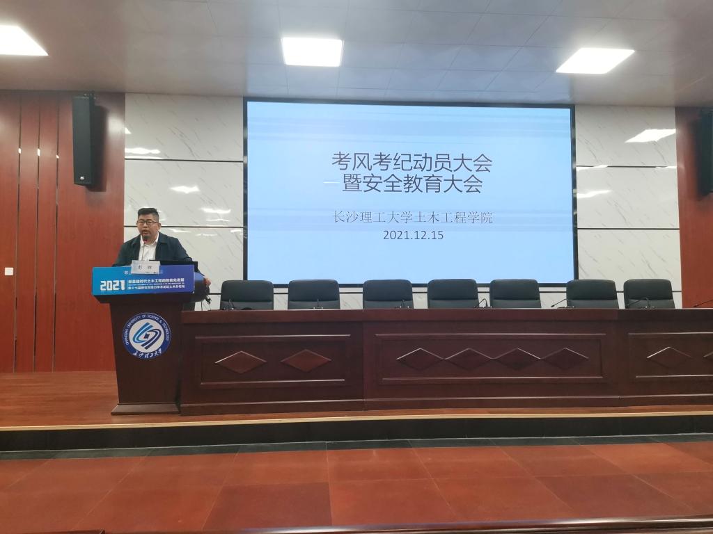 为进一步严肃考风考纪,加强学风建设,营造文明考试,诚信作答的考试环境,提高研究生安全意识,12月15日,土木工程学院研究生考风考纪动员大会暨安全教育大会在金盆岭校区四号教学楼召开。研究生辅导员李小军主持会议,2021级研究生参加会议。