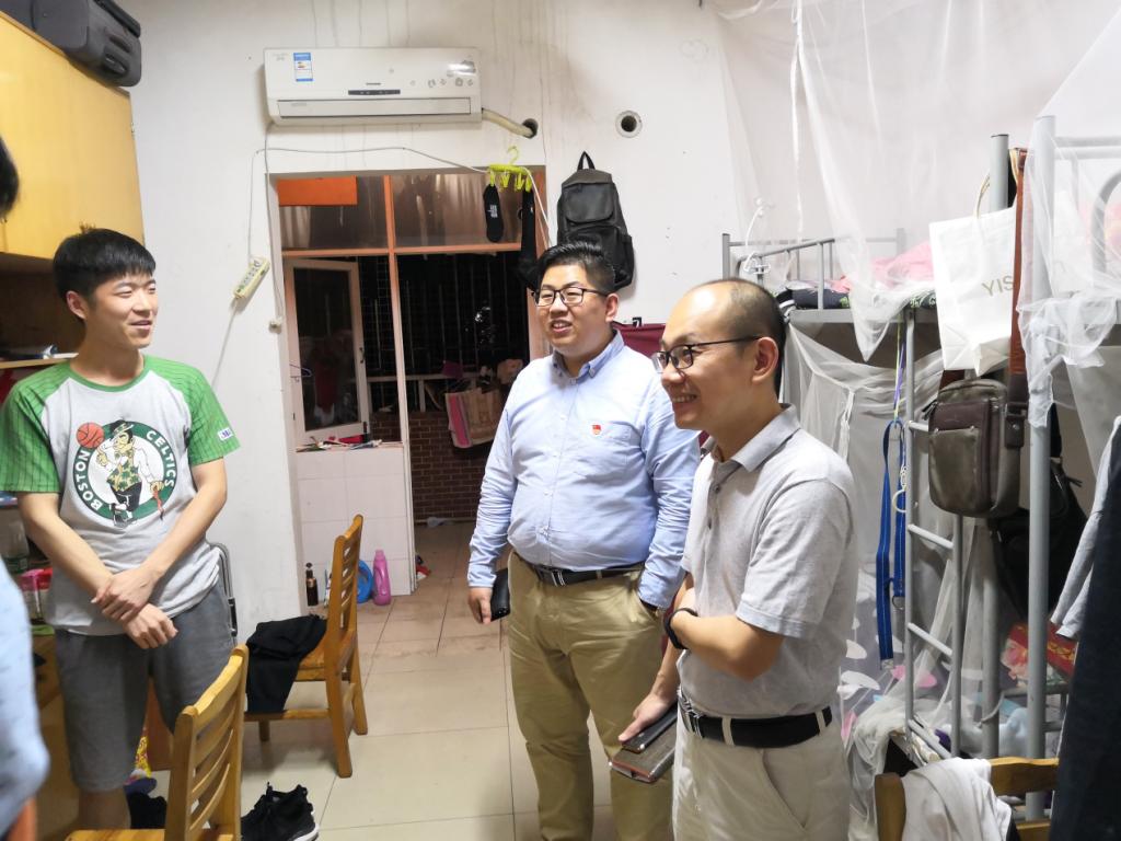 为进一步了解研究生日常生活及寝室安全状况,做好研究生教育培养工作,5月10日晚,能动学院副院长刘忠副,研究生辅导员李小军和学院研究生会学生干部走访了云塘校区所有研究生宿舍,与学生进行亲切交流。