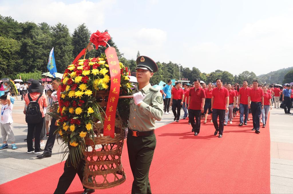 上午10点,全体参训人员在韶山毛主席铜像广场进行铜像瞻仰仪式。140余名辅导员身着统一红色衬衫整齐地肃立在一代伟人铜像下,向铜像敬献花篮,瞻仰毛主席的伟人风采,表达崇敬与追思。全体人员重温了入党誓词。