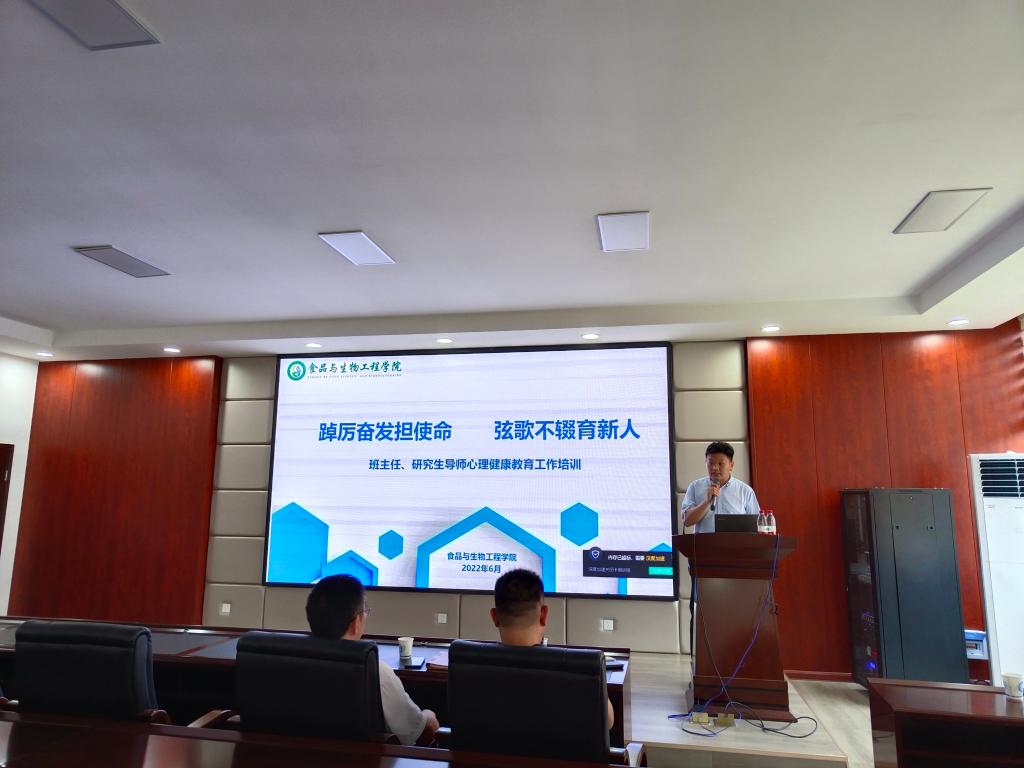 为了落实学校工作要求,不断提高学院班主任、研究生导师队伍思想政治教育能力,增强心理健康教育工作能力,切实发挥班主任、研究生导师队伍的育人功能,凝聚全员育人合力,食品学院在6月7日在工科三号楼A320会议室举行了班主任、研究生导师心理健康教育工作培训,此次培训邀请了学校心理中心易敏老师主讲,学院党总支书记王建辉、党总支副书记练黎旋、副院长方芳、副院长许宙及全体班主任、研究生导师、学工办老师参与此次培训。