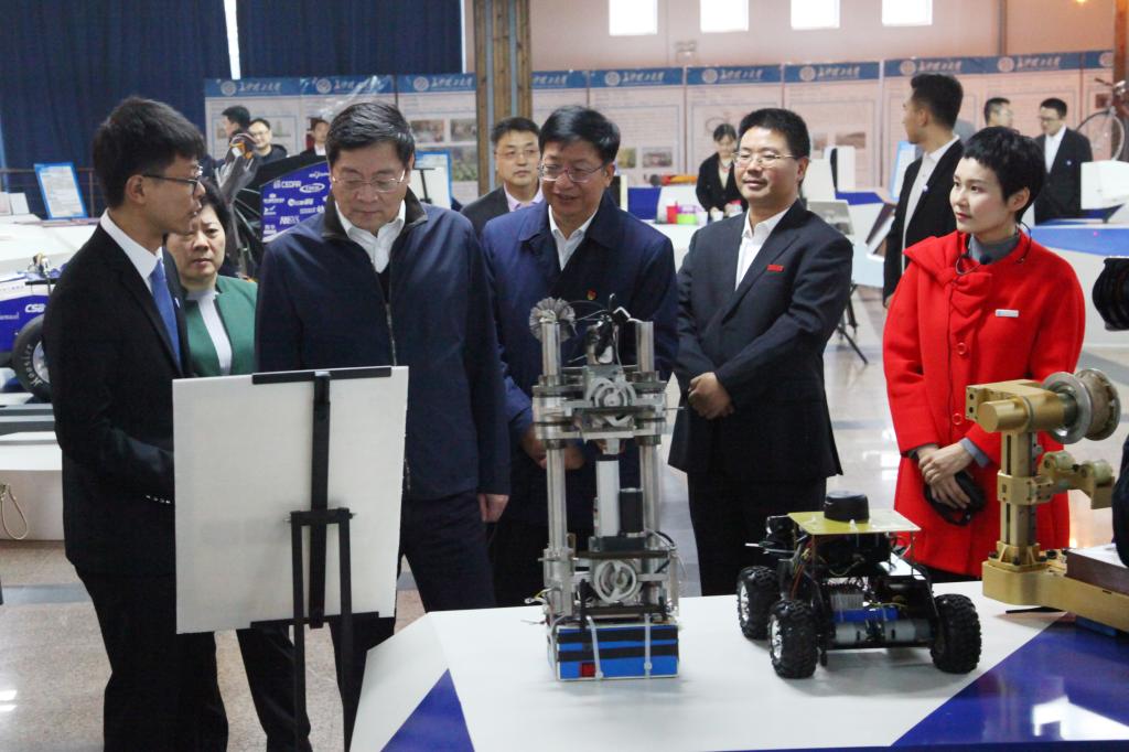 在视察结束后举行的座谈会上,付宏渊做了题为《建设国内一流理工科大学 为富饶美丽幸福新湖南作出新贡献》的情况汇报。付宏渊从开云官网学习贯彻落实习近平新时代中国特色社会主义思想和全国教育大会精神、坚持理论武装、巩固党的全面领导,聚焦立德树人根本任务、培养“底色亮、实践强、有情怀、敢担当”的高素质人才,聚焦国内一流理工科大学目标、不断提升服务新湖南建设发展的能力等三方面汇报学校近年来的办学举措和取得的成绩,并介绍了今后学校发展目标和服务湖南高质量发展的设想。曹一家汇报了学校的办学思路和发展规划,表示学校高度重视学科建设、人才培养、实验室建设等,正积极凝聚办学合力,推进全面深化改革,一定不辜负省委对学校发展的期望,把学校建设得更好。