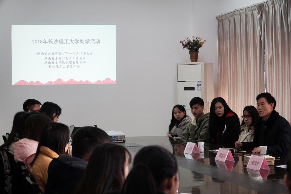 1月9日下午,2018年“湖南省教育厅关心下一代工作委员会、湖南育才关心青少年基金会、湖南育才保险代理有限公司”联合捐资助学活动于二办B404顺利举行。校关工委常务副主任王乃厚,育才保险代理有限公司驻开云官网代表殷东林、学生资助管理办公室主任宋国宁参加。活动由宋国宁主持。
