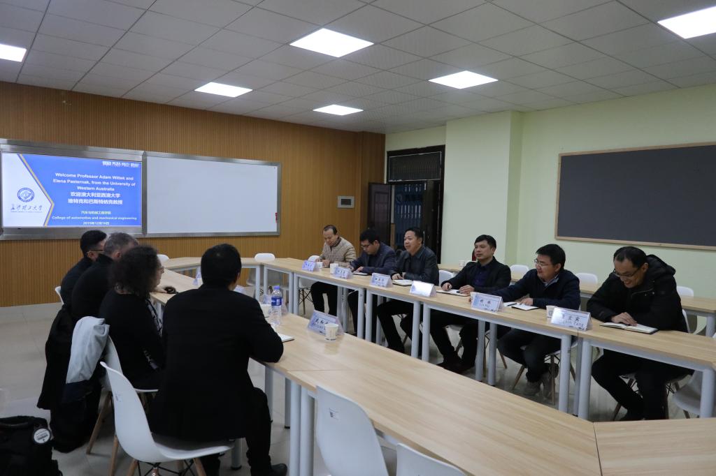 12月16日下午,澳大利亚西澳大学维特克(Adam wittek)和巴斯特纳克(Elena pasternak)教授一行来汽机学院开展国际合作交流,双方在工一411室进行了友好亲切的座谈。党委书记邱国良,院长杜荣华,副院长胡林、何志勇,党委委员唐宏宾,教师代表参加了座谈。