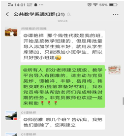 为能按照课程教学大纲要求和教学计划有序优质地进行网课教学,公共数学系还紧急进行了课程资源整合,组织教师进行个人“一课一案”、以及对无法正常参与网课的学生制定“一生一案”的制定,确保能有计划、有步骤地推进网课,做到师师能开好课、生生都有课上,以确保在延期开学期间真正“停课不停教、停课不停学”。