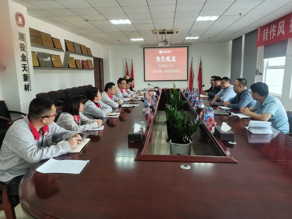 在金天新材料的接待中心,双方就人才培养、实习就业、科研合作等方面进行了深入座谈,公司总经理彭盛军、副总经理李军兆、党群人资部部长刘妮参与交流。周小杰介绍了学校和学院的基本情况和特色优势;彭盛军介绍了公司的发展历程、业务范围以及未来的发展规划,强调了公司对高素质人才的需求和对校企合作的重视。周小杰表示,此次访企拓岗活动不仅为学生提供了解行业、接触企业的机会,也为学院的教学改革和专业建设提供了宝贵的第一手资料。