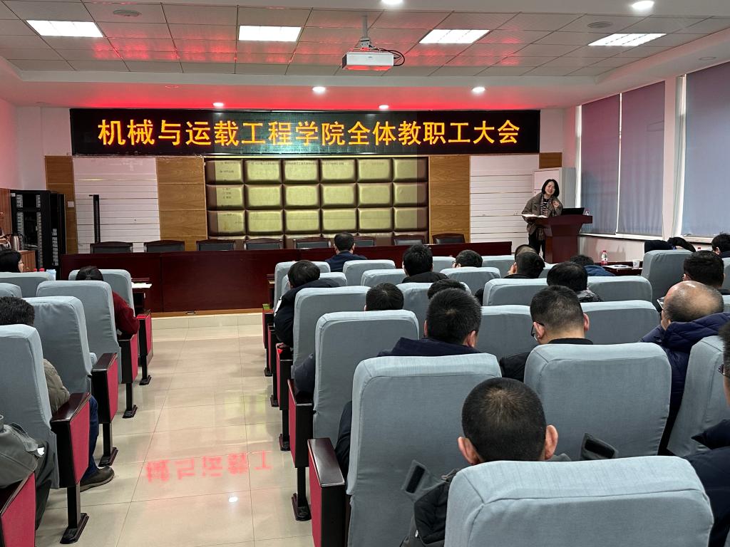 3月4日下午,机械与运载工程学院在云塘校区工科一号楼B417多功能报告厅召开新学期全体教职工大会。会议由党委书记孔伟红主持,全院教职工参加会议。