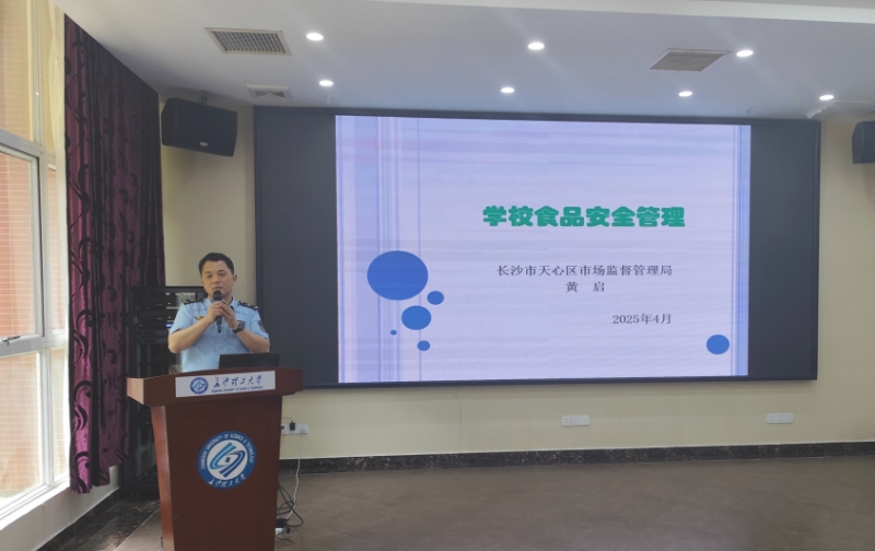 4月25日下午,学校食品安全管理办公室在国际学术交流中心组织开展了新学期食品安全工作专题培训,特邀长沙市天心区暮云街道市场监督管理所所长黄启、湖南省产商品质量检验研究院专家张露苗主讲。后勤中心党委书记孔蔚湘、副主任阳伶,继续教育学院党委副书记任艮丰出席培训,食品安全管理员、食品安全工作骨干及后勤服务质量学生监管队员等100余人参加培训。