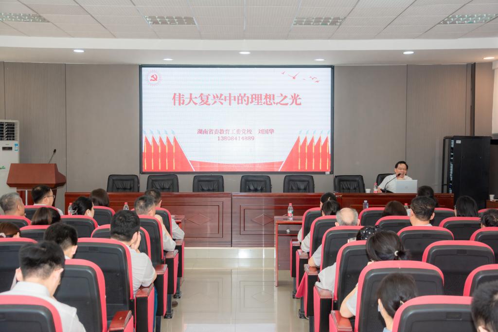 刘国华以《伟大复兴中的理想之光》为题,从强国与复兴、变局与新机、奋斗的密码三个方面,诠释了中国共产党孜孜以求的梦想追求,解读了风起云涌的大国博弈,强调了中国共产党人责无旁贷的使命担当。他强调,进入新时代,中国与世界的关系正经历着历史性的深刻变化,世界正发生百年未有之大变局,作为百年大党和世界第一大执政党的一员,我们必须守住马克思主义之魂、扎牢中华优秀传统文化之根、凝聚核心价值观之力、肩负勇于担当作为之责、亮出敢于善于斗争之剑、严格遵守党纪法规之线,在全面建成社会主义现代化强国的新征程上,踔厉奋发、勇毅前行。