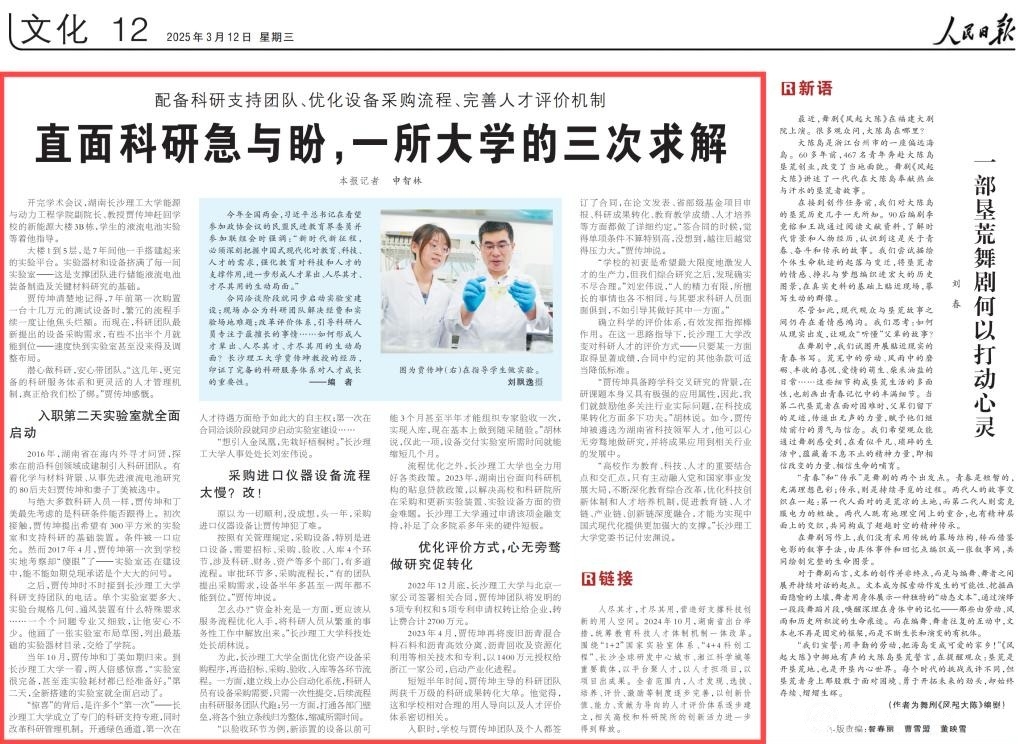 《人民日报》聚焦开云官网:直面科研急与盼,一所
