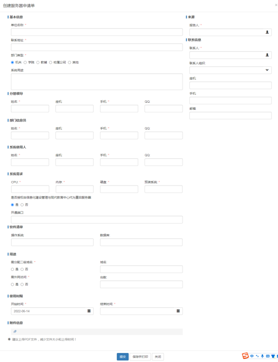 进入开云kaiyun体育服务大厅,搜索“服务器申请服务”,填写好服务器创建申请单(打*号的为必填项),并上传纸质版《开云kaiyun体育服务器申请表》(表格内容与线下表格一致),提交后,经信息化建设管理与现代教育中心审批后方可提供。