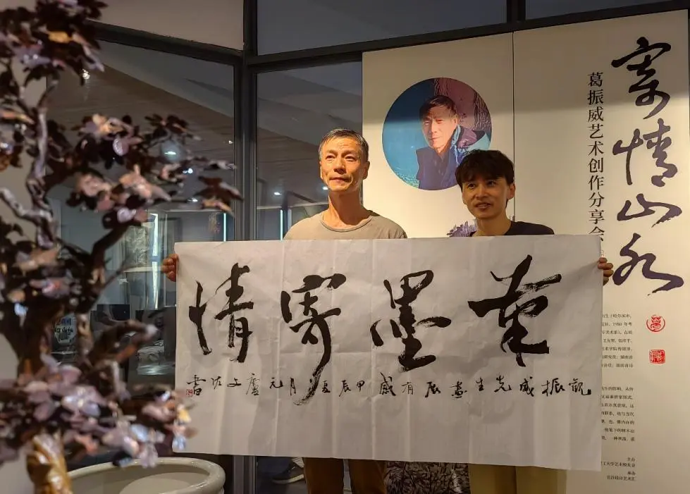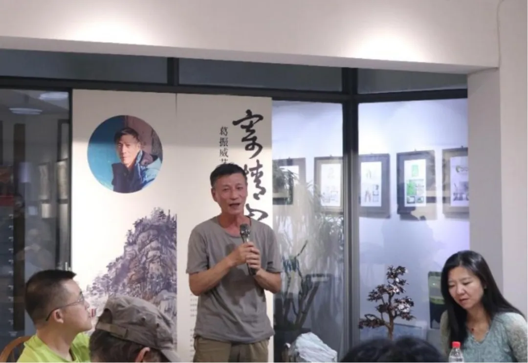本次展览的艺术家、80 级校友葛振威先生致辞,他表示非常感谢各位老师、校友和嘉宾能参与此次分享会,长理的校友会遍布全国各地,有着专业领先、规模庞大凝聚力强这三大特点,长沙无论走到哪里都能遇见轻专的校友,长理的校友会有着其他学校的校友会难以比拟的向心力和凝聚力。感谢校友会的成员组织的这次活动,再次向大家表示感谢。