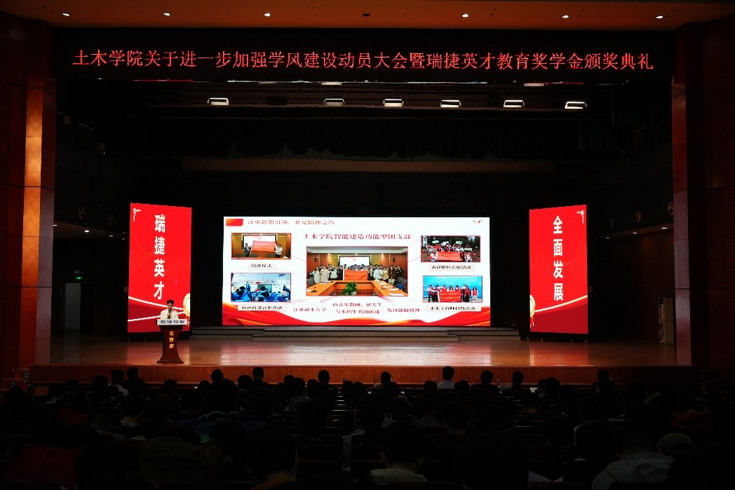 近日,开云kaiyun体育土木工程学院瑞捷英才教育奖学金颁奖典礼在云塘校区大会堂举行。深圳瑞捷工程咨询股份有限公司人才发展总监张梦、人才发展主管李昱坤,校土木工程学院领导班子全体成员,全院学生代表1200余人参加活动。活动由土木工程学院党委副书记黄阿明主持。