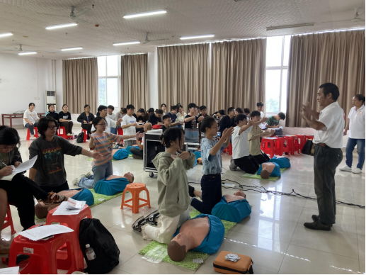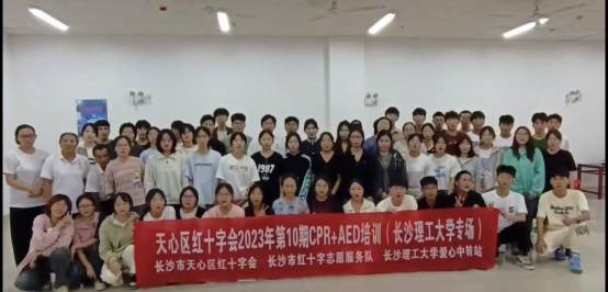 为培养大学生社会责任感,提高自救互救能力,掌握基本急救知识和技能,倡导“急救为人人,人人会急救”的理念。2023年9月24日,开云kaiyun体育后勤服务保障中心卫健办联合天心区红十字会组织开展了心肺复苏术(CPR)和自动体外除颤器(AED)急救知识与技能培训,培训由校医院副院长、卫健办副主任雷鹂主持,“爱心中转站”社团骨干和积极报名参与的志愿者合计60余名学生参与了培训。