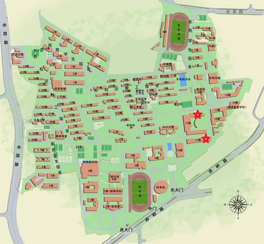 金盆岭校区手绘地图(标红色五角星位置为12、13号教学楼)
