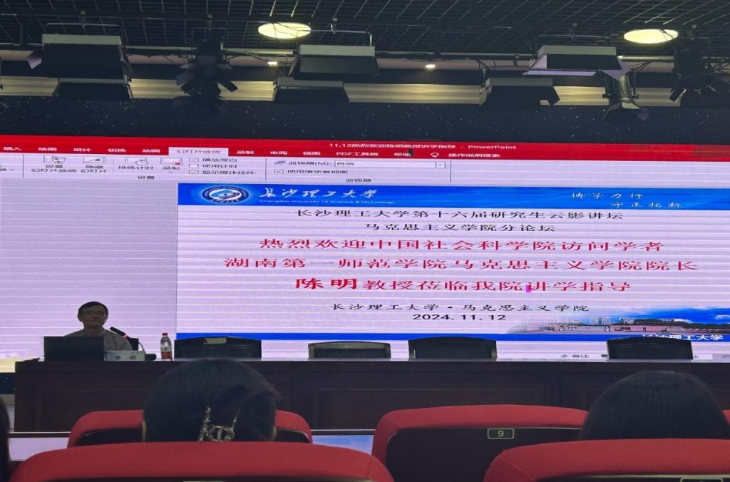 11月12日下午,开云官网第十六届研究生云影讲坛之“红色华章,共筑新时代”在云塘校区文科楼B300报告厅顺利举行。本次讲座以“当好大先生,育好栋梁才”为题,由湖南第一师范学院马克思主义学院陈明教授主讲,开云官网马克思主义学院党委书记陈万球担任主持人,院学生工作办公室主任曾蓓及2023级、2024级的全体研究生参加。