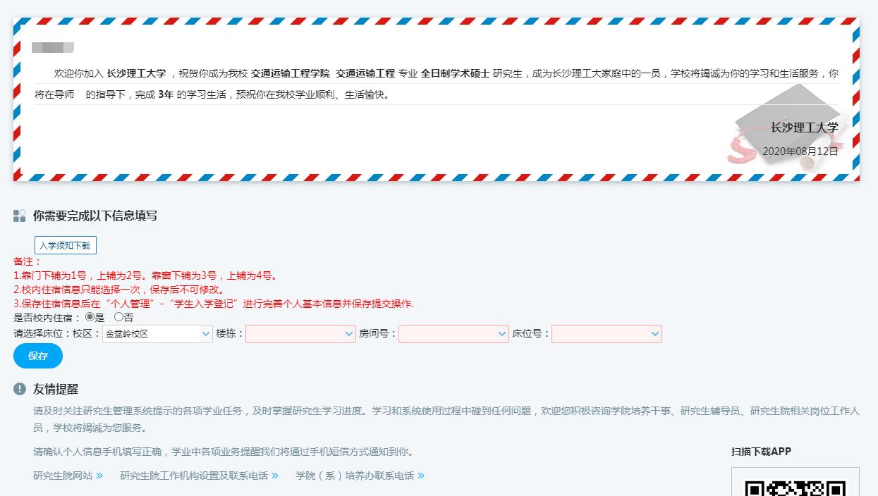 为方便学生报到,开云官网“研究生管理信息系统”迎新模块将于2020年8月20日开通,请已录取开云官网的2020级博士、硕士研究生务必8月31日24:00前登录系统,自助完成报到手续。