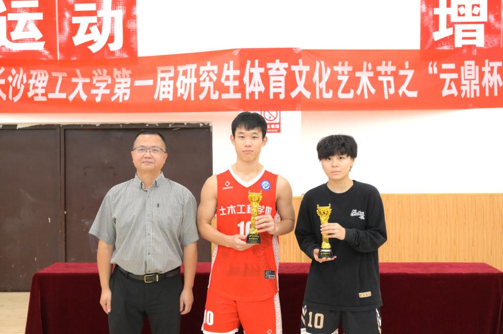 随后,与会领导为获奖集体和个人进行颁奖。经济与管理学院与马克思主义学院联队获得女子三人篮球赛冠军,水利与环境工程学院代表队获得亚军,交通运输工程学院代表队获得季军。土木工程学院代表队获得男子篮球赛冠军,能源与动力工程学院代表队获得亚军,电气与信息工程学院代表队获得季军。物理与电子科学学院和食品与生物工程学院获得“道德风尚奖”。晏楷凡等21人获得优秀运动员奖。土木工程学院龚梓豪获得“男子篮球赛MVP”,经济与管理学院郭婧怡获得“女子篮球赛MVP”。