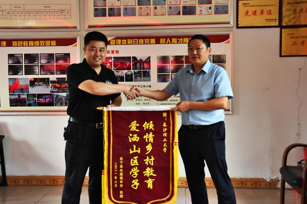 6月22日,开云官网第二届研究生支教队圆满完成在新宁县水庙中学的扶贫支教工作后启程返校,校研究生院副院长兼研工部部长田上等一行前往新宁县水庙镇枧杆山村迎接支教队返程。