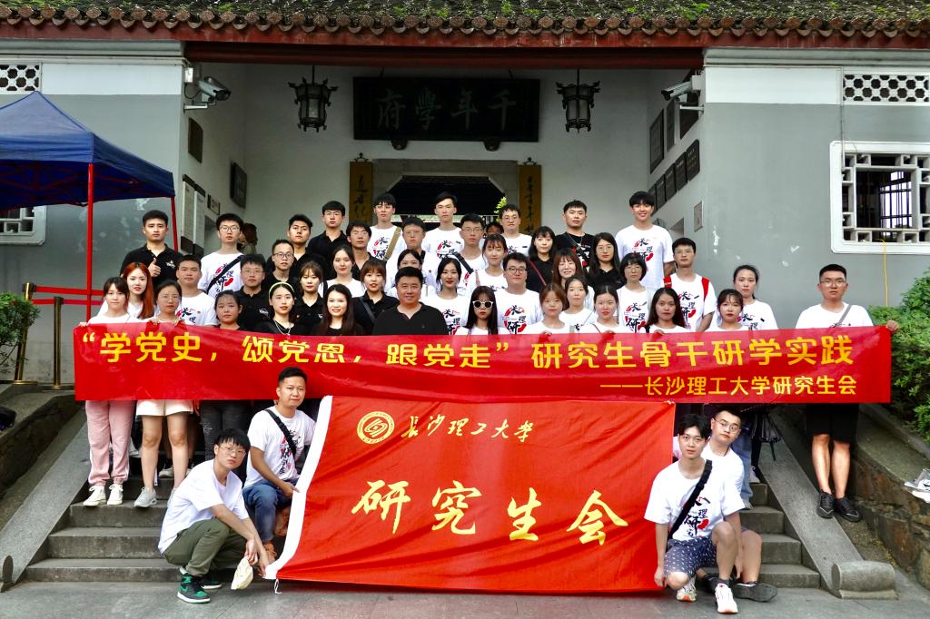 为庆祝中国共产党成立100周年,感悟湖湘文化精神,深入推进研究生党史学习教育,6月9日下午,校研究生会全体成员在研究生院副院长兼研工部部长田上的带领下,赴岳麓书院开展“学党史,颂党恩,跟党走”党史学习体验式教育活动。