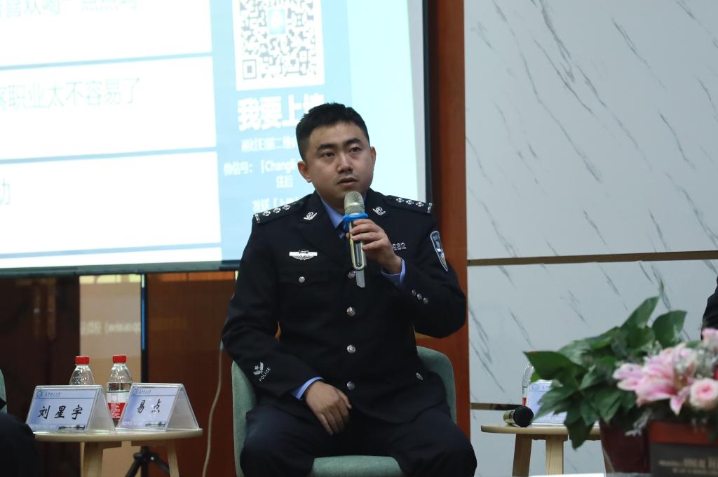 在“名场面回顾”环节,警官为在场观众展现执法一线场景,叙说节目背后法与情、事与理的真实故事。每当民警们讲到工作中遇到的惊险或温情的场景时,现场不时爆发出热烈地掌声,师生们都为这群城市安全的守护者点赞。
