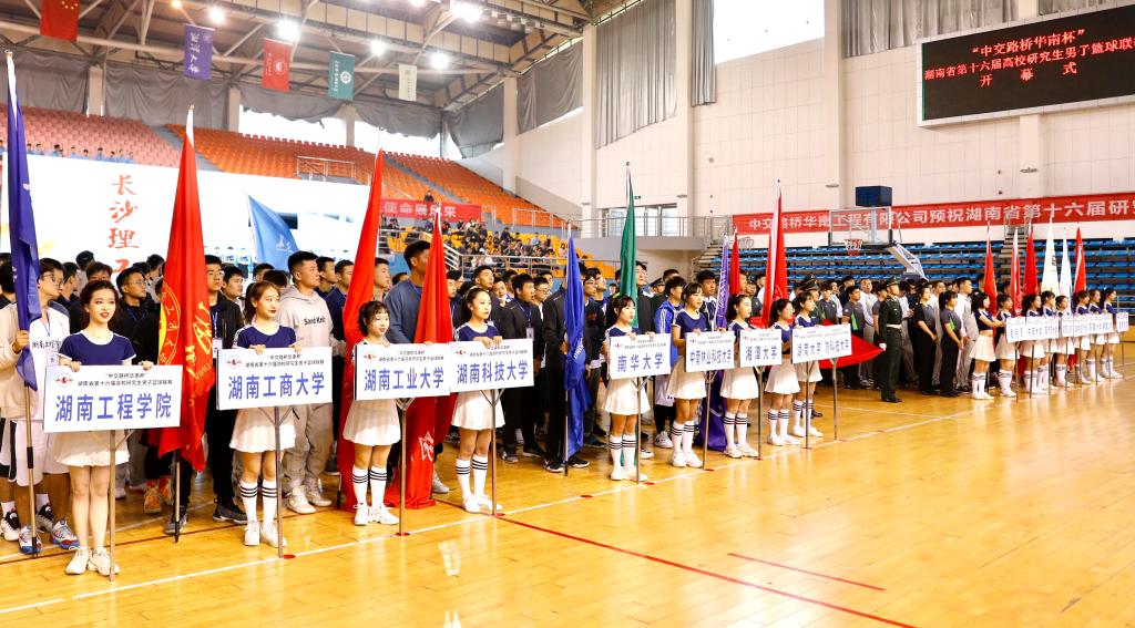 11月1日上午9:00,由湖南省教育厅主办、开云kaiyun体育承办的“中交路桥华南杯”湖南省第十六届高校研究生男子篮球联赛在开云kaiyun体育云塘校区体育馆举行,湖南省教育厅学位管理与研究生教育处处长颜胜利、开云kaiyun体育副校长叶泽教授、全省17所参赛高校领导及中交路桥华南公司代表出席开幕式。开幕式由开云kaiyun体育研究生院院长管德清教授主持。