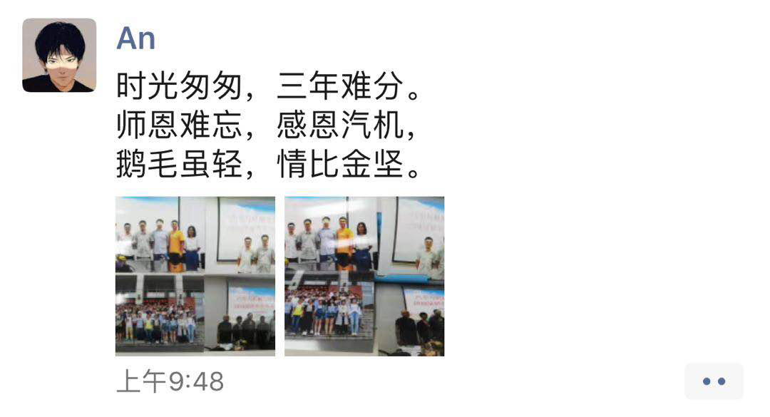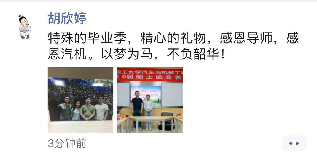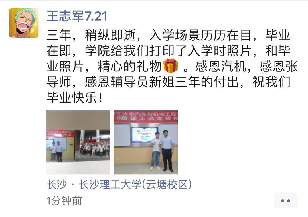 “哇!2020特别的毕业季,收到了特别的礼物,两张照片,满满的回忆,大大的惊喜,终于拥有了‘别人家的老师’”啦!”最近开云kaiyun体育汽机学院的研究生们纷纷在朋友圈晒出了自己的毕业礼物——“与导师的合影”。当然这不是普通的合影,而是一组让人倍感温暖的对比照,一张是2017年入学时与导师第一次见面的合影,另一张则是今年答辩结束时与导师的合影。