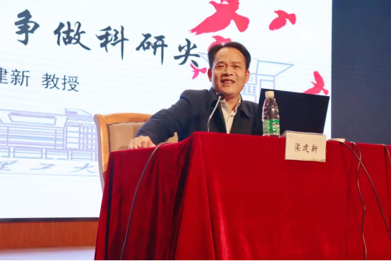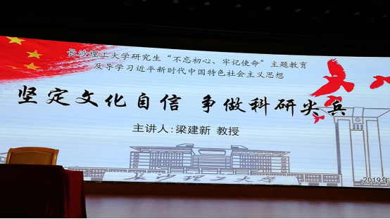梁建新从中华文化的发展历程,为研究生阐述了“自信”和“文化自信”的科学释义及三个体现层面。从文化自信与科学研究两者关系,对文化自信给科学研究提供正确的价值取向、科学的思维方式、人本的道德律令和独特的精神气质分别进行了阐述,并指出,只有当拥有真正的文化自信,才能在科学研究中不丢失文化自信,取得造福于人民的科学研究。最后,从一个主题、“两个维护”、三个共同体思想、“四个全面”和“四个伟大”、五位一体的战略布局以及六个新判断等方面对习近平新时代中国特色社会主义思想进行了导学,为了使研究生们学深悟透,并推荐了《习近平新时代中国特色社会主义思想学习纲要》《习近平谈治国理政一、二卷》和《党的十九大报告》等读本进行自我教育。