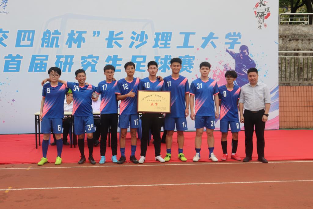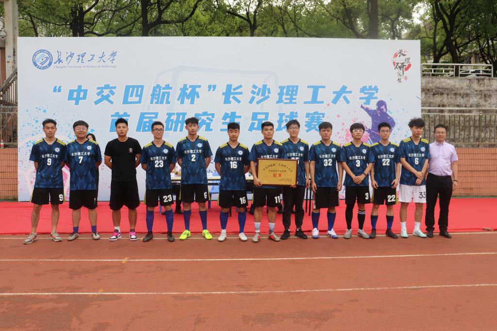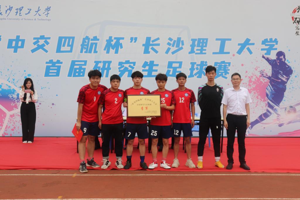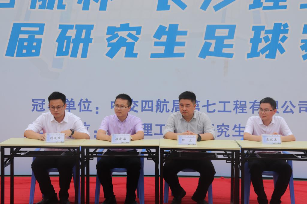 4月24日下午“中交四航杯”开云kaiyun体育首届研究生足球赛在金盆岭校园田径场完美落幕。经过一周的激烈角逐,经济与管理学院、电气与信息工程学院、汽车与机械工程学院和能源与动力工程学院四支劲旅挺进决赛,展开最后的角逐。中交第四航务工程局有限公司湖南分公司总经理唐建亚、中交四航局七公司湖南分公司经理袁就生、中交四航局七公司湖南分公司执行经理刘义阳和校研究生院副院长兼研工部部长田上等出席。