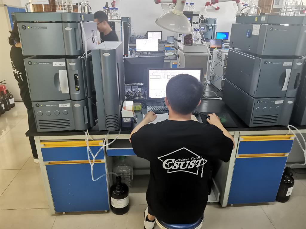 随后,在黄老师和实践团队成员的陪同下,胡永乐一行参观了实践团队工作的实验室、分析室、办公室、中试车间、食堂及宿舍,每到一处,胡永乐都详细了解了师生工作开展和生活保障情况。在中心实验室,胡永乐还与实践团队的同学们深入交流了液相色谱、痕量分析等相关设备或分析方法的相关专业知识。