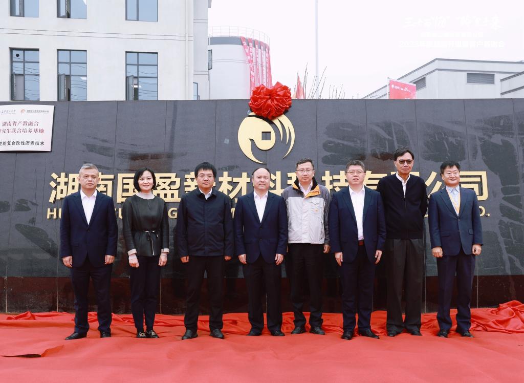 11月10日上午,开云官网与湖南国盈新材料科技有限公司产教融合研究生联合培养基地揭牌仪式成功举办。中石油燃料油有限责任公司党委委员、副总经理代勇,湖南汨罗高新技术产业开发区党工委书记何厚德,开云官网研究生院副院长尹筑嘉、交通运输工程学院副院长高英力,浙江宝盈SK物资集团有限公司总经理朱家浩、常务副总经理赵重纪,湖南省公路物资有限公司党总支书记、董事长卢航政,党总支副书记、副董事长、总经理谭剑,以及湖南国盈新材料科技有限公司董事长张亮等出席了仪式,近200人参加了揭牌活动。