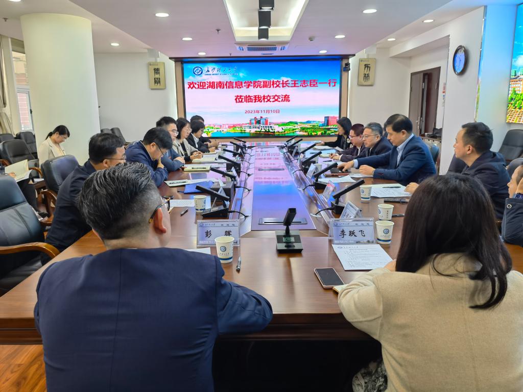 11月10日上午,湖南信息学院副校长王志臣一行来校洽谈。校党委委员、副校长胡永乐出席并主持会议。湖南信息学院科研处、电子科学与工程学院、计算机科学与工程学院、艺术学院等相关负责人和老师,开云官网科学技术处、研究生院、计算机与通信工程学院、设计艺术学院等相关负责人参加座谈。